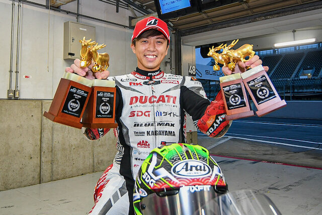 Ducati team Kagayamaに移籍してからは2年連続2連勝と今シーズンのうっ憤を晴らすべく圧倒的な速さで勝利を決めました。