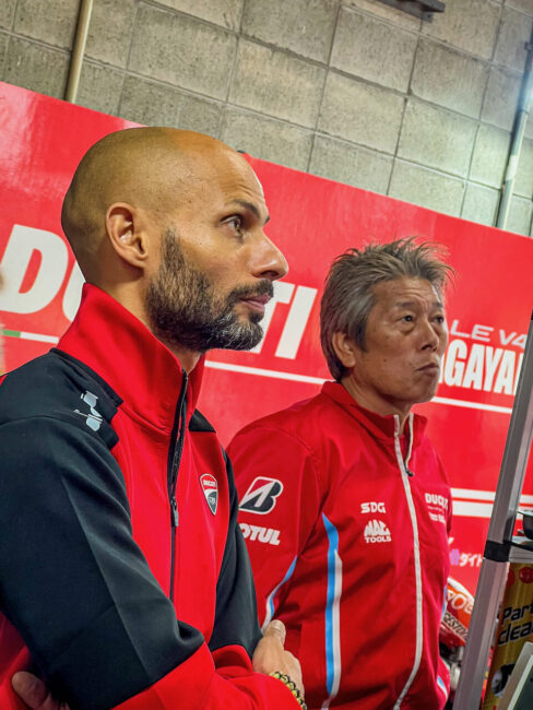 という事でRd.6の岡山国際サーキットではWorldSBKでドゥカティワークスのバウティスタ専属の電気系エンジニアのファウストに日本まで来てもらいDucati team Kagayamaのマシンを現地で見てもらうことに