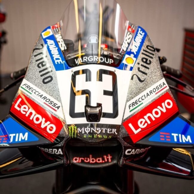 シルバーショットガンカラーが眩しい、フランチェスコ・バニャイアが乗るのは1972年イモラ200マイルでポール・スマートとブルーノ・スパッジアーリが伝説的なワンツーフィニッシュを飾った