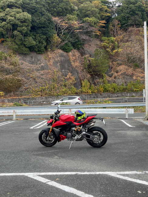 走り納めツーリングの後、店頭の新型Streetfighter V2試乗車はより万人受けする感じに前後サスペンションのイニシャルと伸び側、縮み側をそれぞれ調整してもらいました。