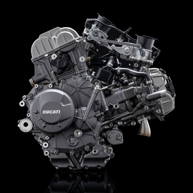 1から新しく作ったDUCATI史上最軽量のV2エンジンはデスモドロミックやタイミングベルトも使用していない重量わずか54kgのエンジン