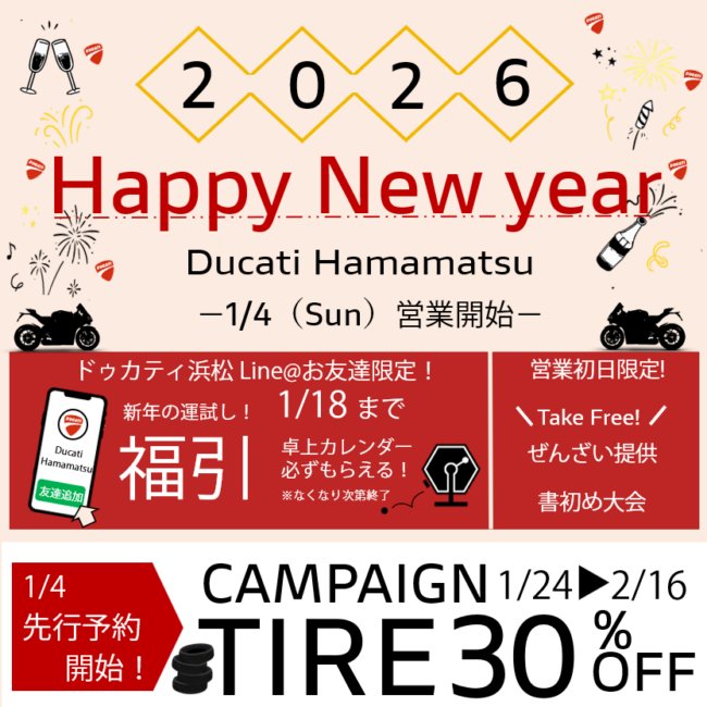 皆様新年最初の運試しは是非ドゥカティ浜松で!