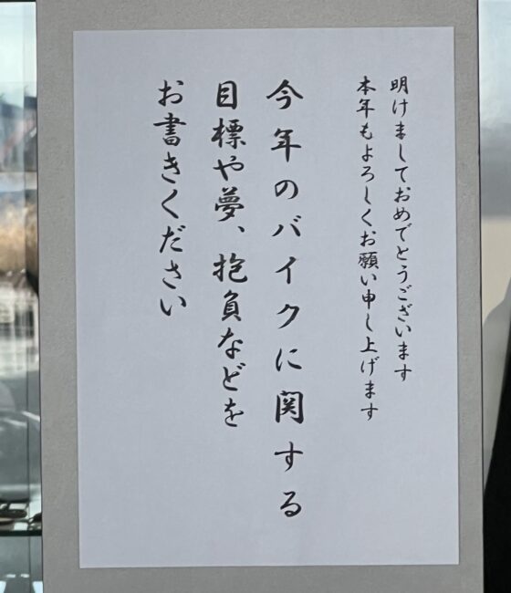 ぜんざいで温まりながら今年のバイクに関する目標や夢、抱負などをお書きください。