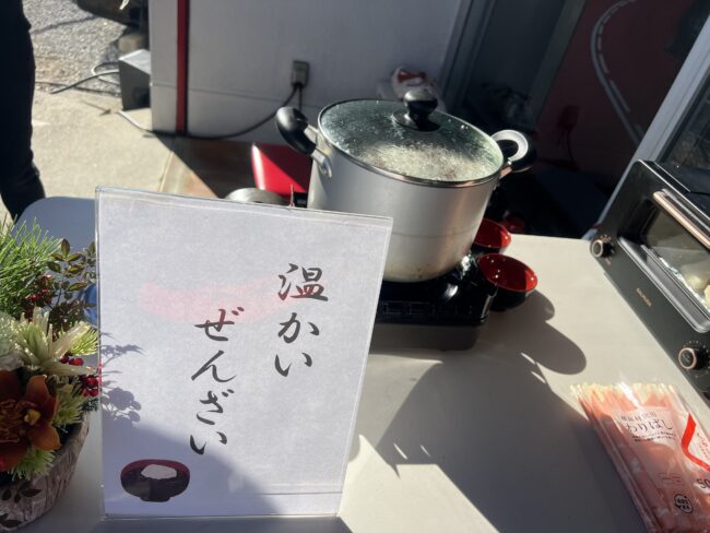 本日1月4日限りとなりますが温かいぜんざいの提供と