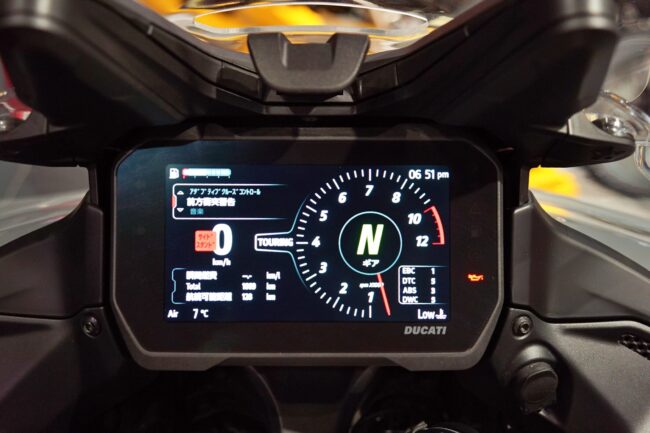 2025年モデルからのMultistradaV4シリーズは大型の液晶カラーメーターが日本語表記に対応しました。