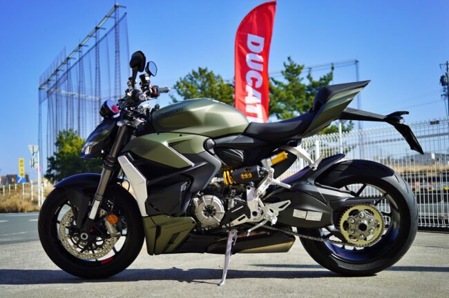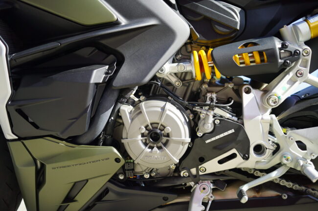 スーパークアドロエンジン+片持ちスイングアーム+SBKスペックのアップハンドルとなるStreetfighterV2 Superquadro