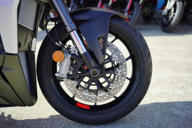 フロント:ショーワ製フルアジャスタブルBPFフォーク+ブレンボ製M4.32モノブロック·キャリパー