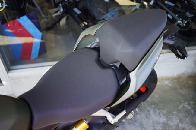 サーキットメインのPanigaleV2と異なり公道走行がメインのStreetfighterV2ではライダー&タンデム共に厚みのあるシートが取り付けられています。