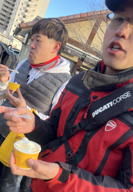 どんなに寒くてもソフトクリームを食べるのは「ライダーの義務」なんだとか。。。
