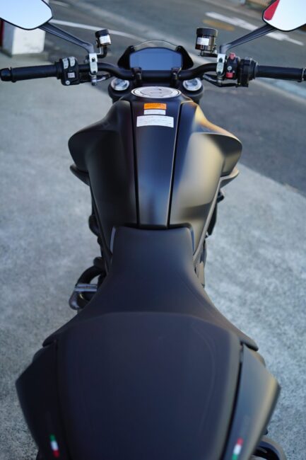 1000㏄近い排気量ながら国産250~400㏄並みの車両重量になるので取り回しも非常に軽快に行えます。