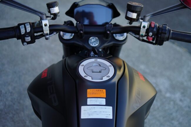 現状はデスモドロミックを搭載する最後のモンスターとなり中高速域では気持ちの良い走りを味わえます。