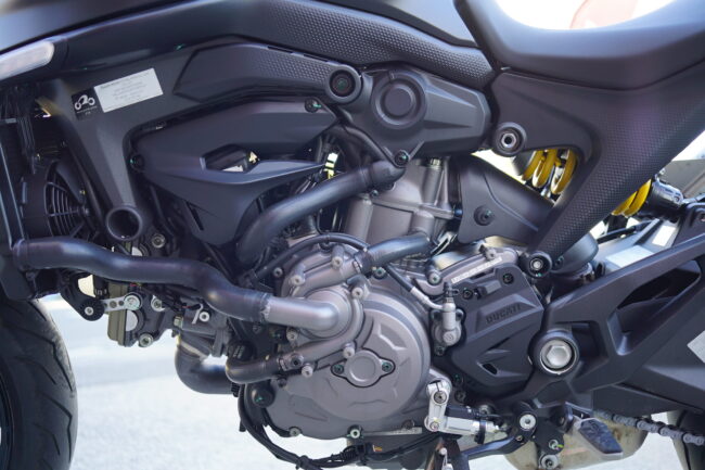 111ps/9,250rpmの最高出力と9.5kgm/6,500rpmの最大トルクを発生する937ccテスタストレッタ11°エンジン