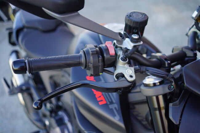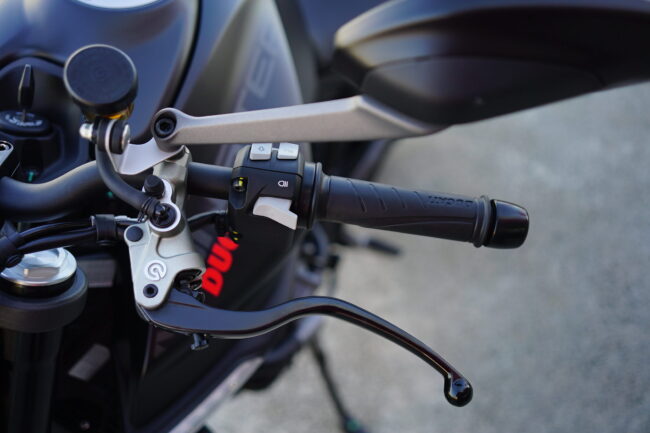 ブレーキ&クラッチ共にブレンボセミラジアルマスターを採用してネイキッドモデルでもサーキット走行も可能な装備となります。