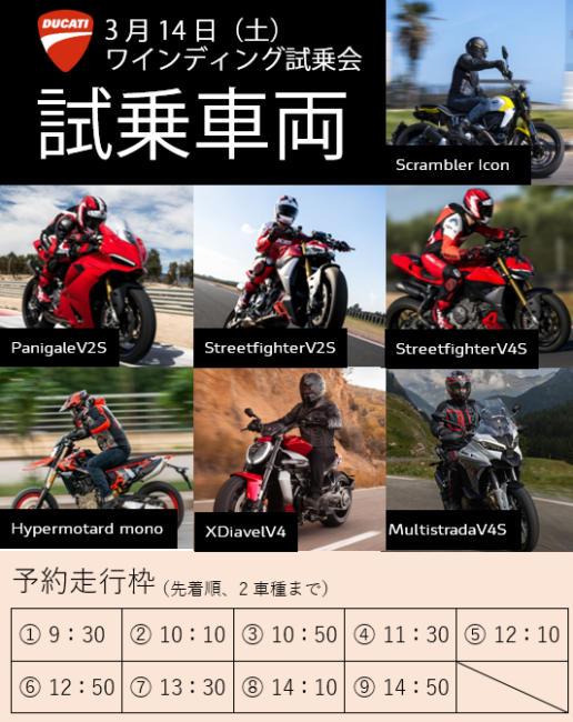 今年はドゥカティシーズンオープニングとして、第三回ワインディング試乗会を開催いたします!