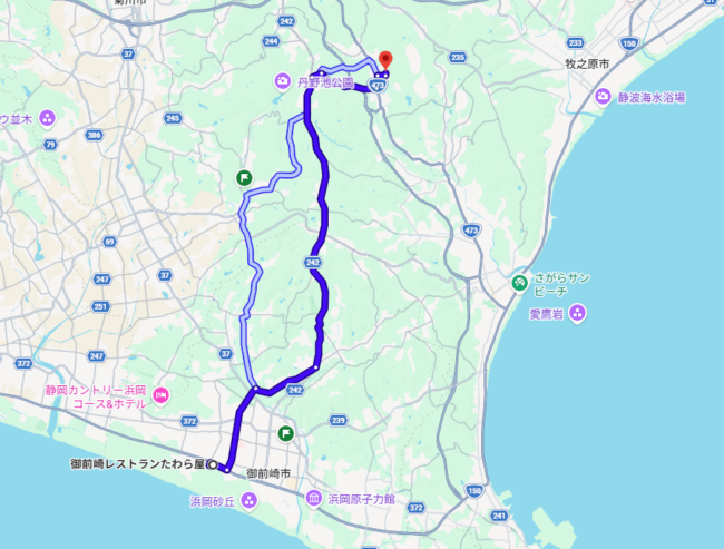 たわら屋さんから森木農園はこんな感じのルートです。