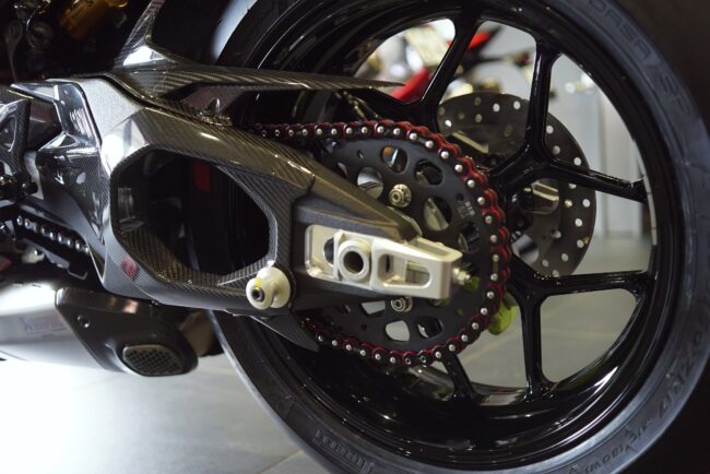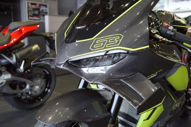 ドゥカティとランボルギーニのコラボモデルと言うことで最初からグロス仕上げのカーボン外装などカスタム感満載のPanigale V4 Lamborghiniですが