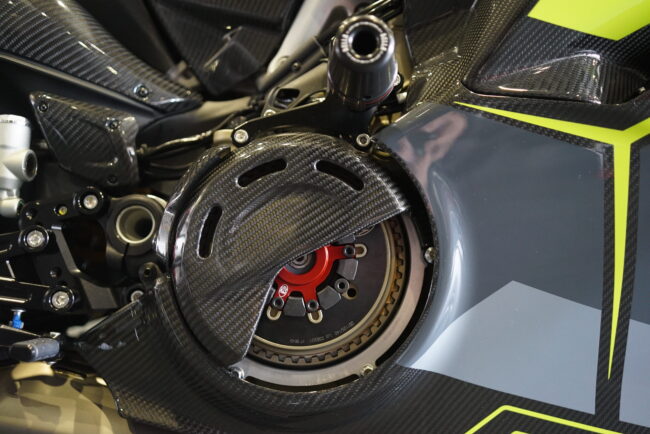 ドゥカティとランボルギーニのコラボモデルと言うことで最初からグロス仕上げのカーボン外装などカスタム感満載のPanigale V4 Lamborghiniですが