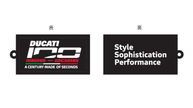 期間中にドゥカティおよびスクランブラー・ドゥカティ のご試乗・お見積りで、ドゥカティ正規販売店店頭にて100周年オリジナルラバーキーホルダーをプレゼントいたします。