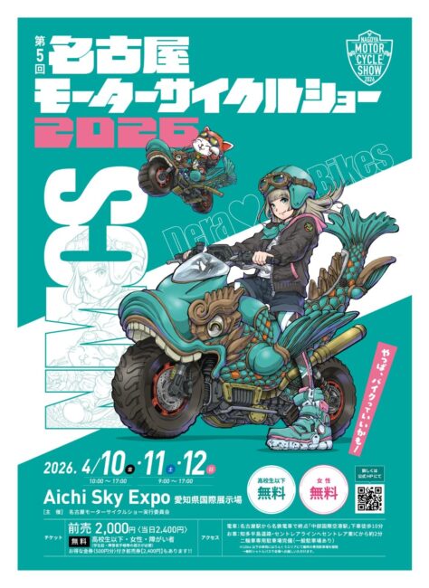 愛知県セントレア横Aichi Sky Expoにて第5回名古屋モーターサイクルショー(NMCS)2026が開催されます。