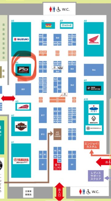 ドゥカティブースはA4の位置です、スズキさんのお隣ですね。