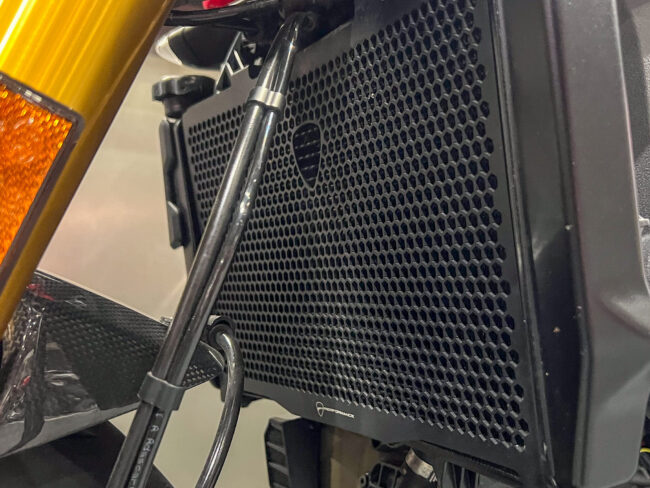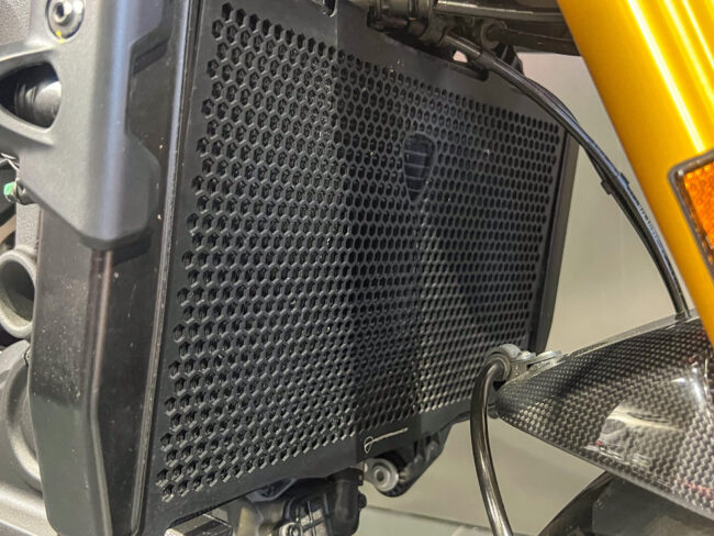 ドゥカティパフォーマンス製のラジエターコアガードも装着済み。