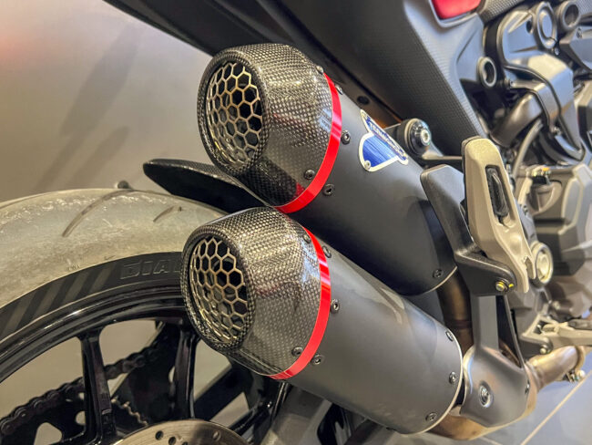 足回りのアップグレードに加えてオプションとなっているテルミニョーニ製サイレンサーもSPでは標準装備となります。